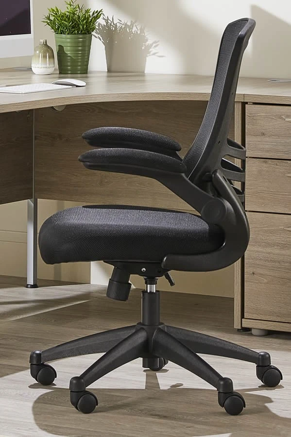 The Alabama designer mesh back office chair with folding arms is available in five colours. The operator chair has a tilt mechanism lockable in an upright position finished with an airflow mesh seat with a breathable mesh back.