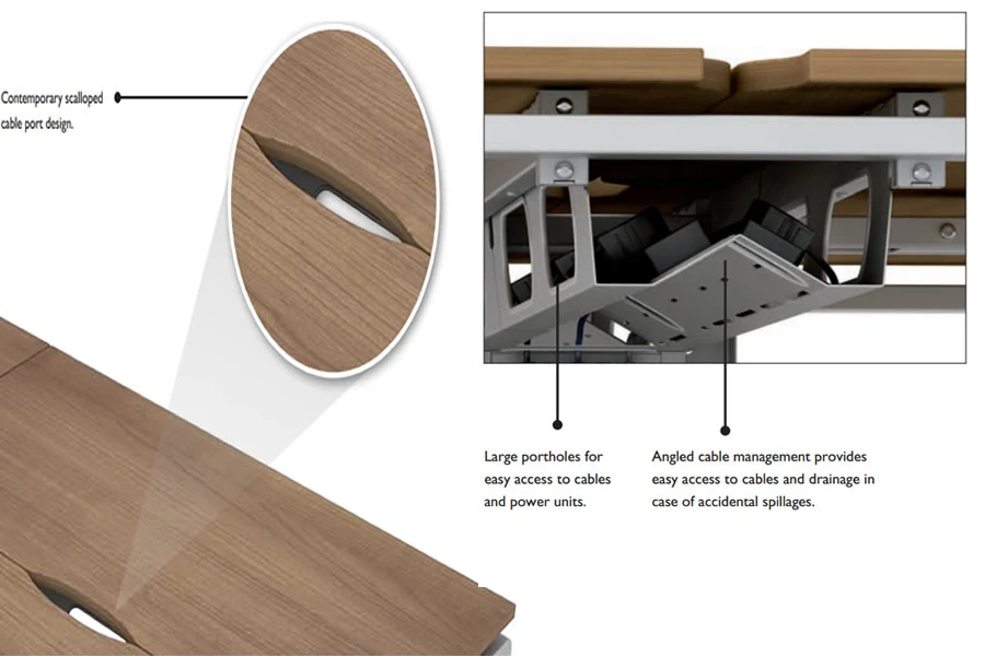 But what makes the Aura Beam Rectangular Bench Desk range truly amazing is its clever cable management system that runs along the entire length of the desk configuration. This means you can easily connect your devices and keep your cables neat and tidy, without compromising on aesthetics or functionality.