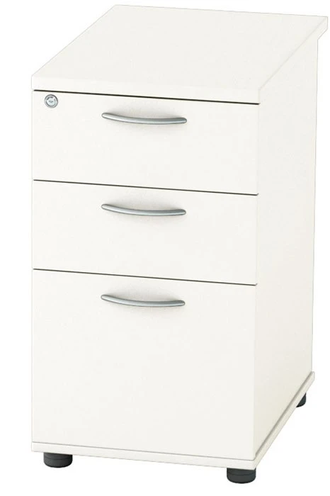 - 3 Drawer pedestal features 2 box and 1 filing drawerÂ
