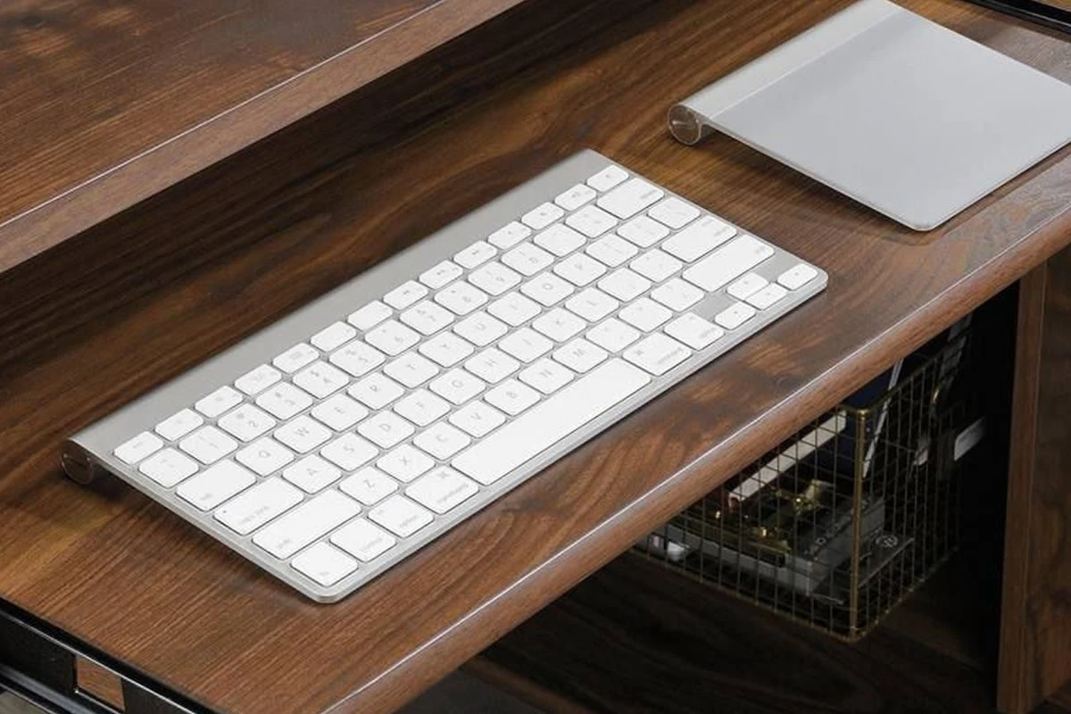 This mid-century style piece offers a slide-out keyboard/mouse shelf that opens and closes on smooth metal runners, three easy gliding storage drawers and two file drawers with full extension slides that accommodate letter-size hanging files. It also features cubbyhole storage so you can access all of your books and folders.