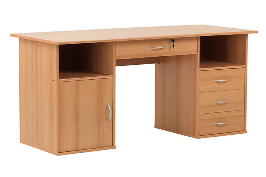 The Dallas beech effect workstation is a traditional style desk boasting a wealth of storage space, in a beautiful Beech effect with chrome handles.