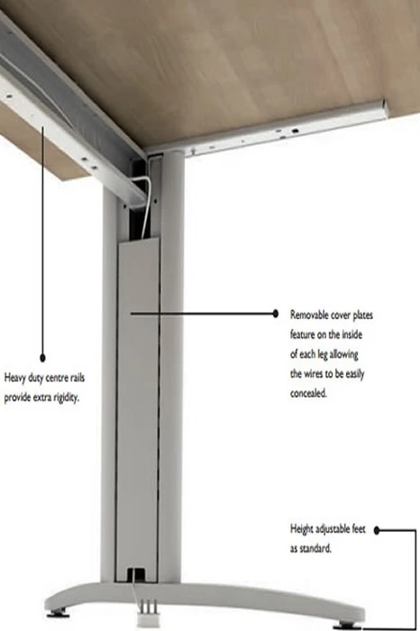 The desk tops are made from high quality materials that can resist scratches and heat. They are 25mm thick and have 3 mm edging for extra durability. You can choose from 7 different colour finishes to match your office decor.