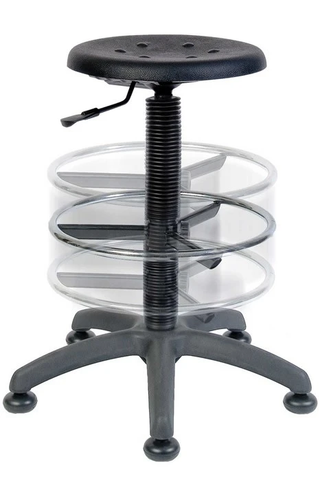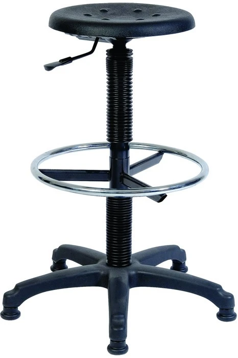 Draughting chair with gas seat height adjustment. Easy to clean soft polyurethane seat.Â