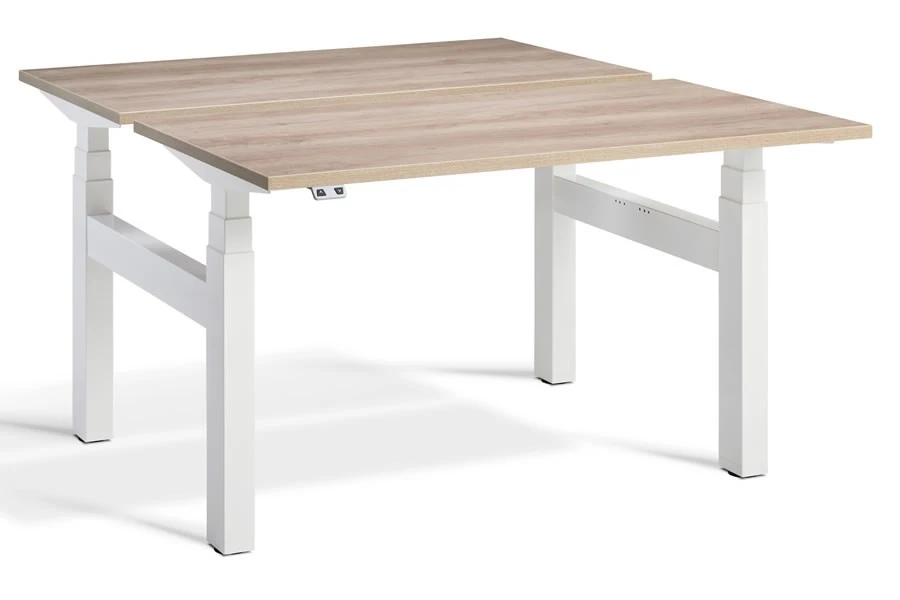 The Duo height adjustable dual user electric standing desk allows persons to work within a traditional bench system, with the facility to stand up to work at any time. The Duo frame is powered by four high quality motors, so each side can be used independently, with a separate soft-touch control for each.