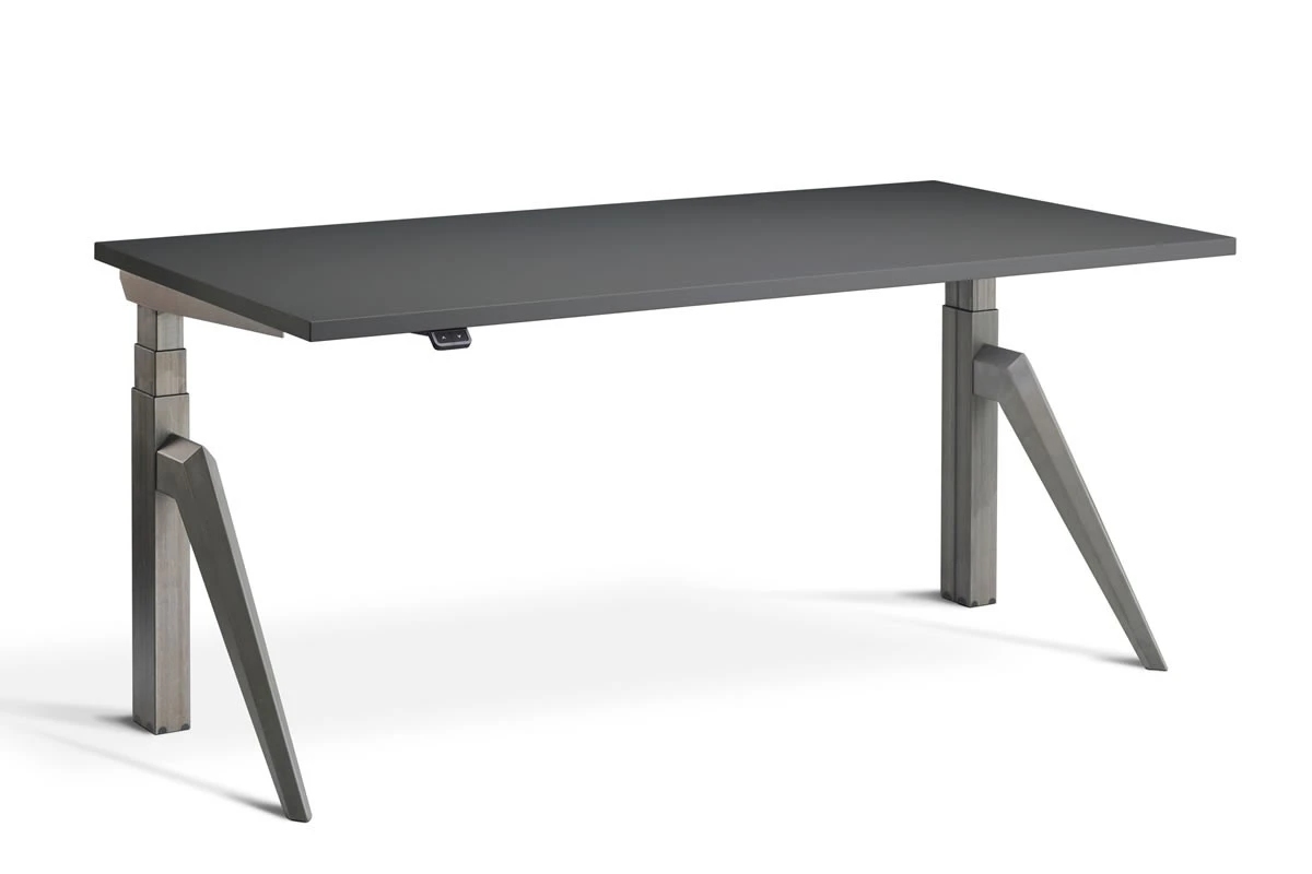 Available in a silver powder coat height adjustable frame finish, and 8 different desk top finishes in a choice of three desk top sizes.
