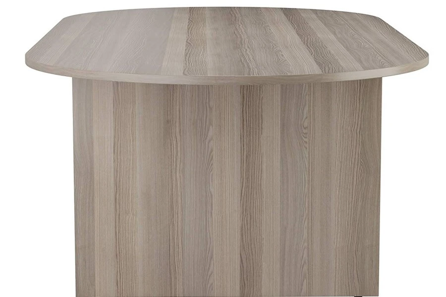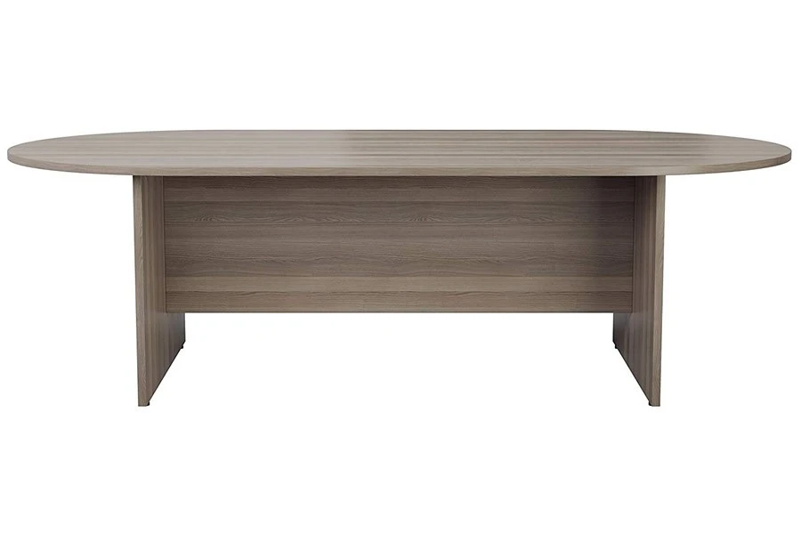 The D end office/meeting table is finished in grey oak, a colour that gives it a sophisticated and modern look. It has wooden slab end legs and a modesty panel that add to its style and stability. It also has levelling feet that ensure it can stand firmly on uneven floors.