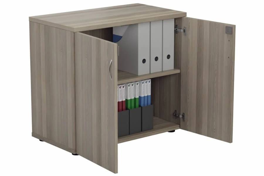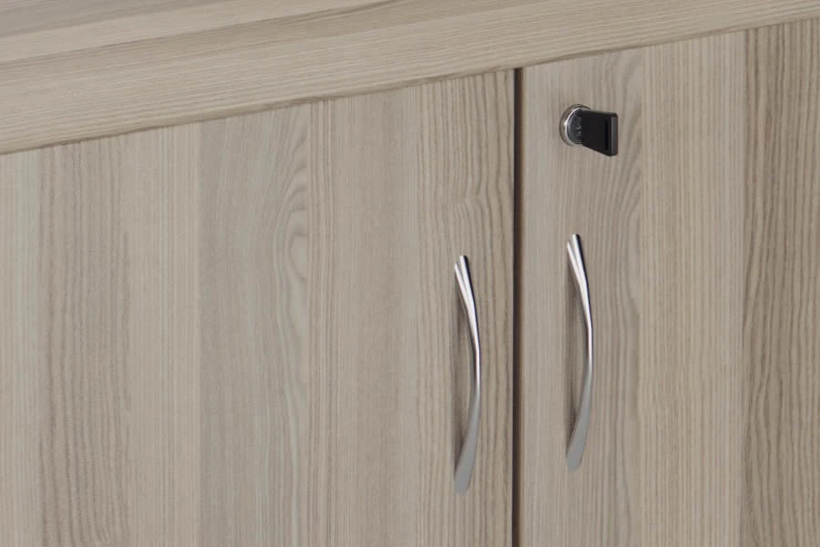 The cupboard is finished in a grey oak finish that is easy to clean and maintain. The grey oak colour adds a touch of warmth and sophistication to your office environment.
