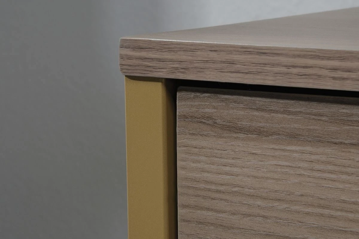 The desk is completed with a lower filing drawer with full extension slides which can hold letter or legal-size hanging files. The light brown durable powder-coated metal frame complements the Diamond Ash finish perfectly, ensuring it’s an ideal and seamless match for all rooms and colour schemes.