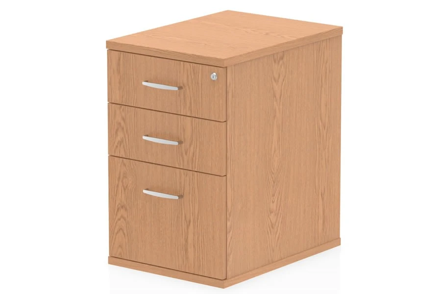 The Norton Oak 3 drawer desk high oak finish pedestal is a lockable pedestal. It features two box drawers one filing drawer that accepts either foolscap or A4 suspension files.
