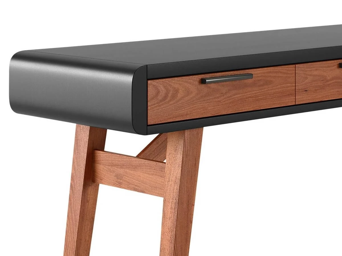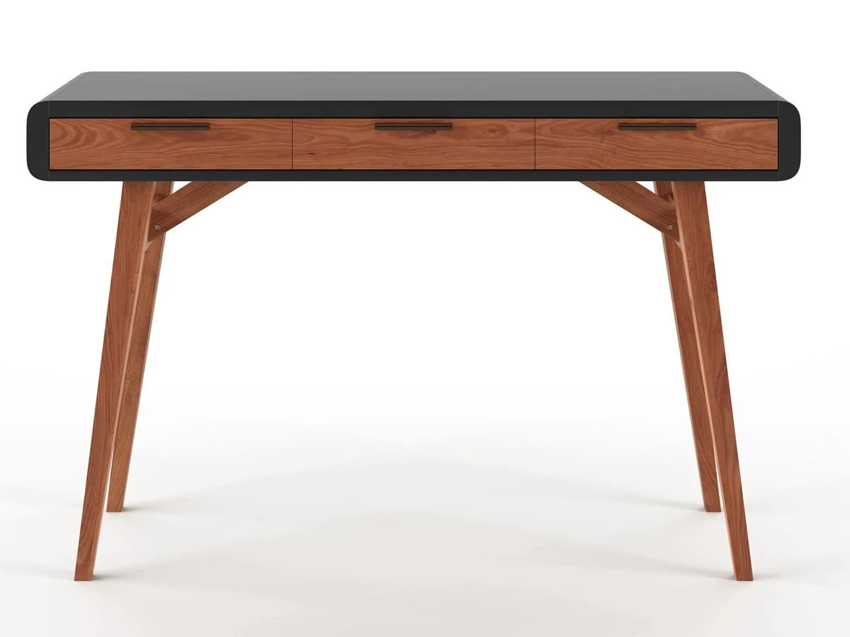 The Pevensey home office desk desk has a smooth black desk top and rich stirling oak frame. It is a simple yet sleek design and makes an ideal desk for home use, students or ideal hot desk for homework or laptop usage.