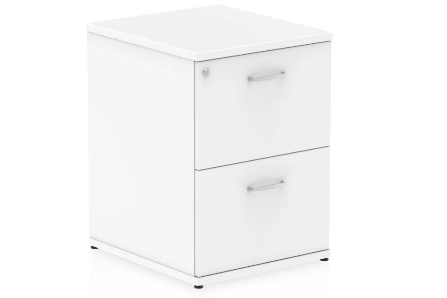 Do you want to keep your files organized and secure in a stylish and convenient way? If you do, then you need the Polar White 2-drawer filing cabinet, the perfect addition to any modern office. This filing cabinet is made of durable MFC board that is easy to clean and gives a professional look. It has a white finish that matches any decor and other furniture in the Polar White range. It has two lockable drawers that can hold either foolscap or A4 suspension files, giving you plenty of storage space and flexibility. It also has metal drawer runners and handles that ensure smooth and easy operation. The lock comes with two keys, so you can have a spare one in case you lose one.