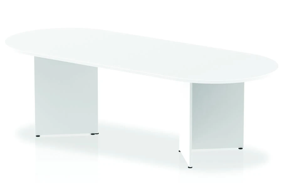 The Polar 2400mm boardroom table is a large and elegant table that can seat up to 8 people comfortably. It has a 25mm table top that is scratch-resistant and easy to clean. It has a 2mm impact-resistant edging that protects it from bumps and knocks. It has panel legs that can adjust to uneven floors, ensuring stability and balance. It has a white finish that matches the Polar White Office Range, a modern and sophisticated furniture collection that will make your office look amazing.