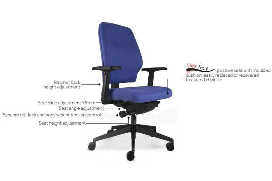 The Posture Logic is an intelligently designed office chair and is made to suit any user size. Backed with a 5-year guarantee and tested to 28 stones makes the Posture Logic a one chair fits all model.