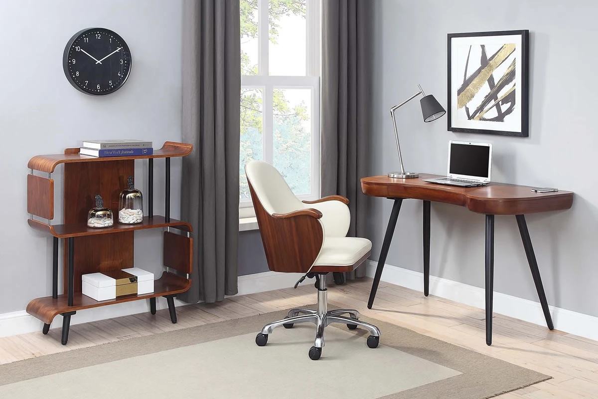 The San Francisco Executive Desk is not just a desk, it’s a statement. It has a curved front that is stunning and eye-catching, creating a focal point in your room. It is made of high-quality veneer that is smooth and durable, and comes in two elegant finishes: oak or walnut. You can choose the one that matches your preference and personality.