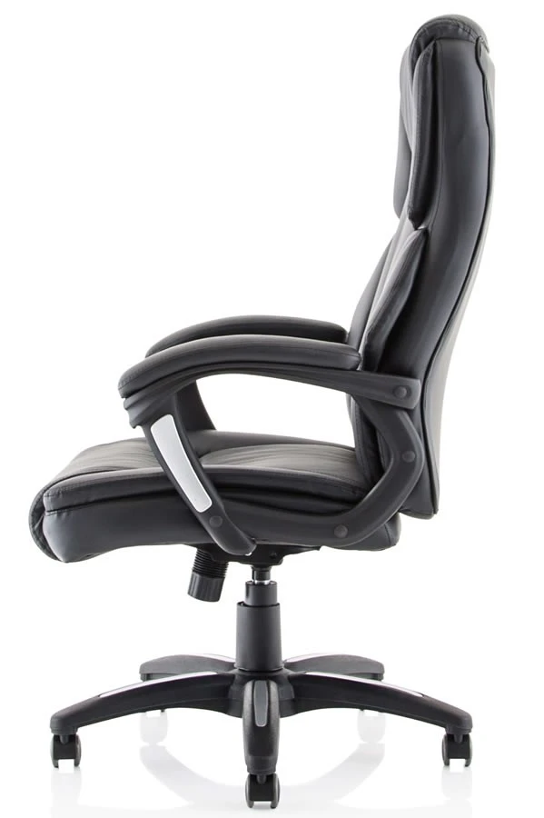 The Stratford high back executive leather chair features a luxury padded seat and backrest and deeply padded integral headrest section.