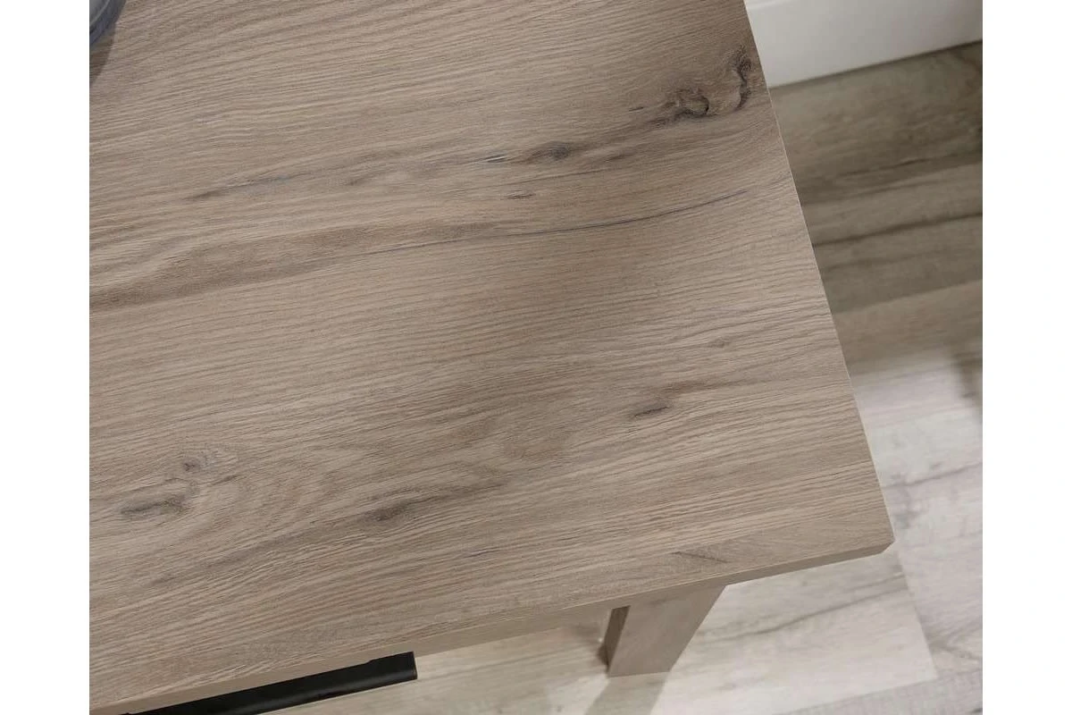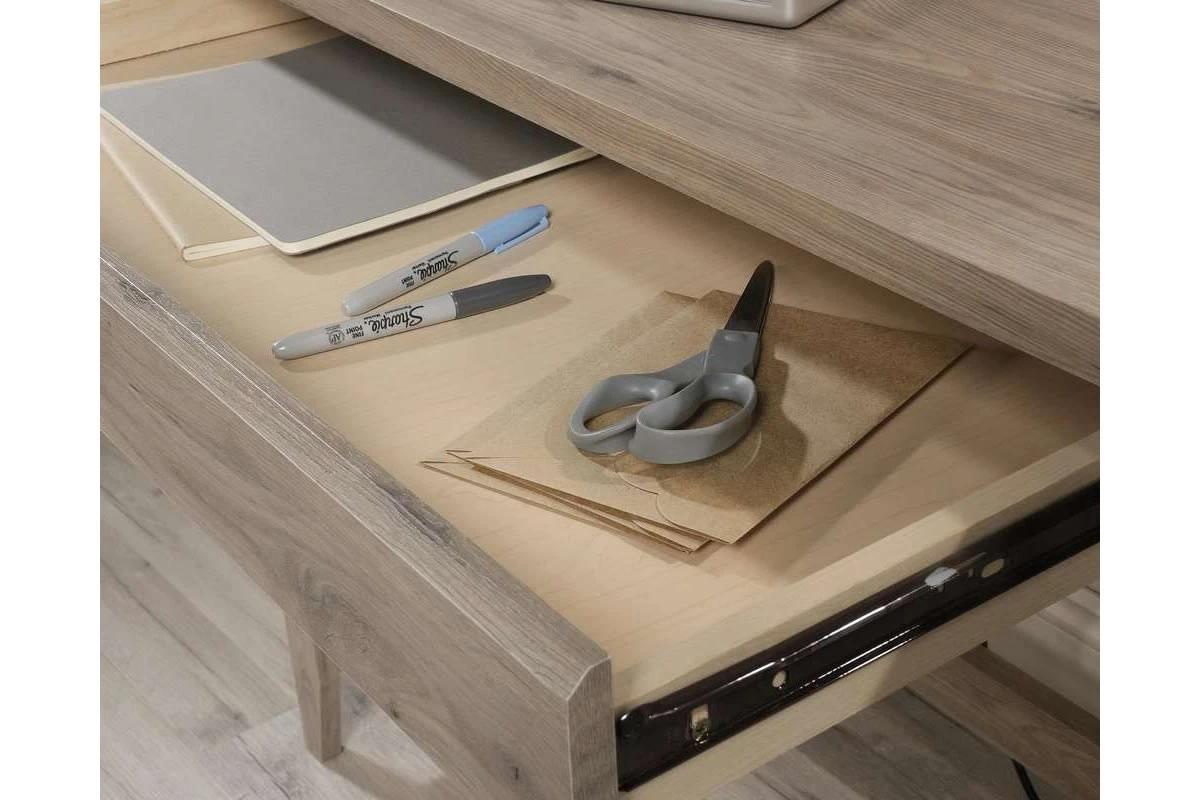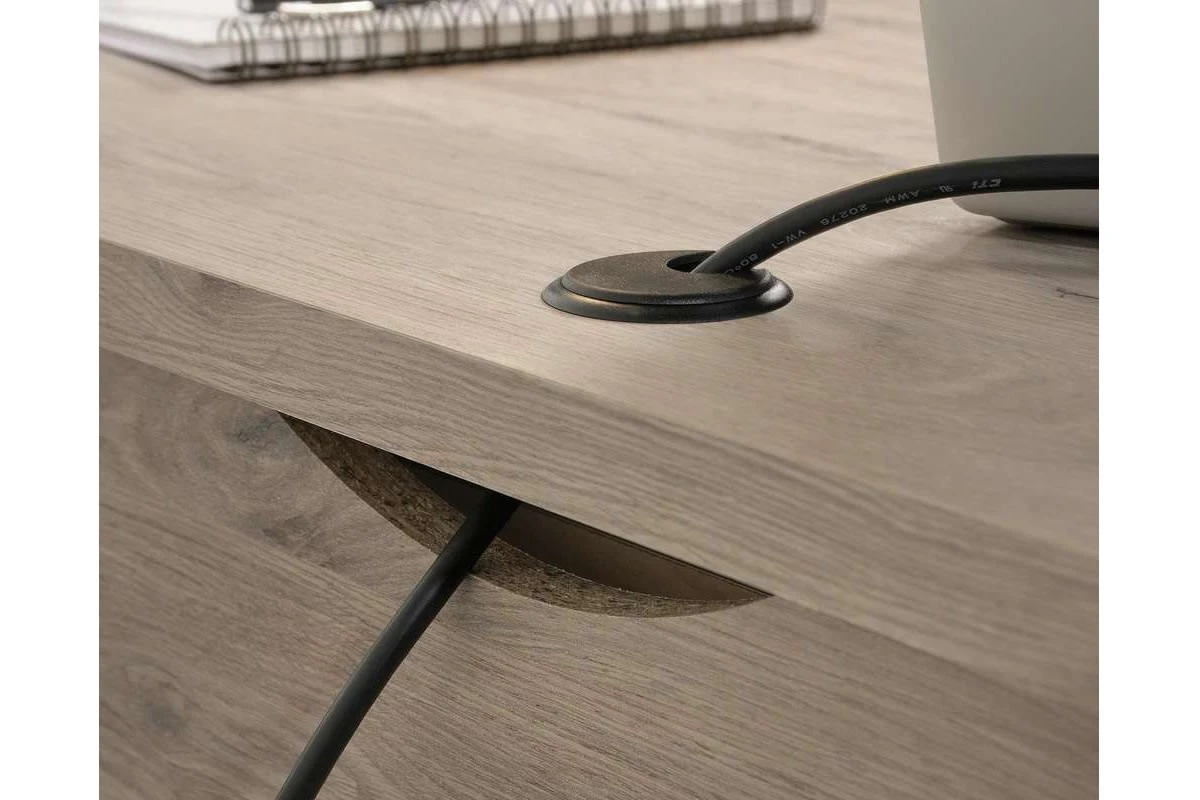 Finished in a stylish Laurel Oak, it benefits from a spacious work area, two drawers with metal runners and safety stops, one of those being a filing drawer for letter-sized hanging files and a lower storage shelf. This desk also has a cable port for discreet cable management and tapered leg detail.