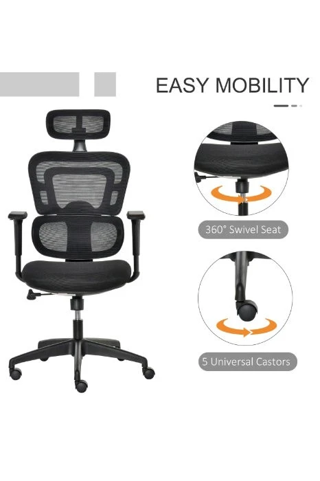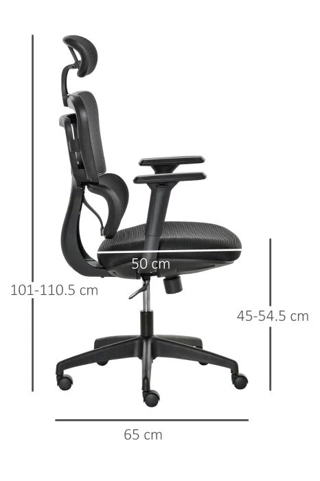 The breathable mesh backrest is fitted with a sprung lumbar panel that forms automatically into the user’s body. The backrest fully reclines and can be locked in an upright position. Increase your comfort using the fully adjustable ergonomic headrest.